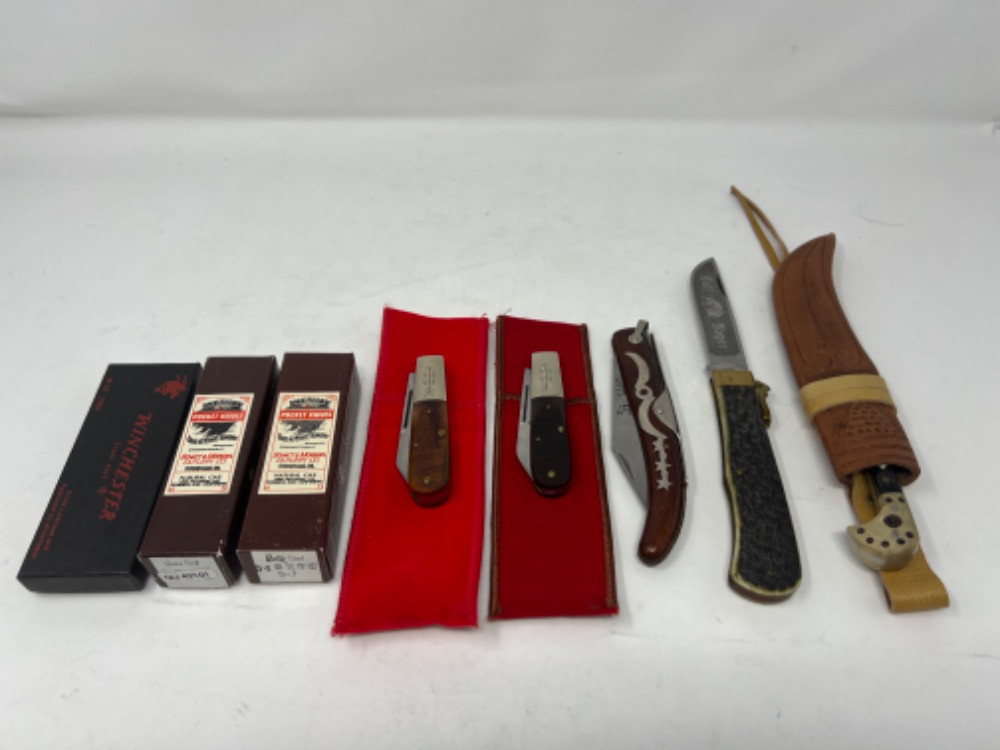 Lot # 29 - 9 Winchester Burnt Orange Collectible Folding Knives Starting Bid: $ 5.00 Bids: This sale will end in: |