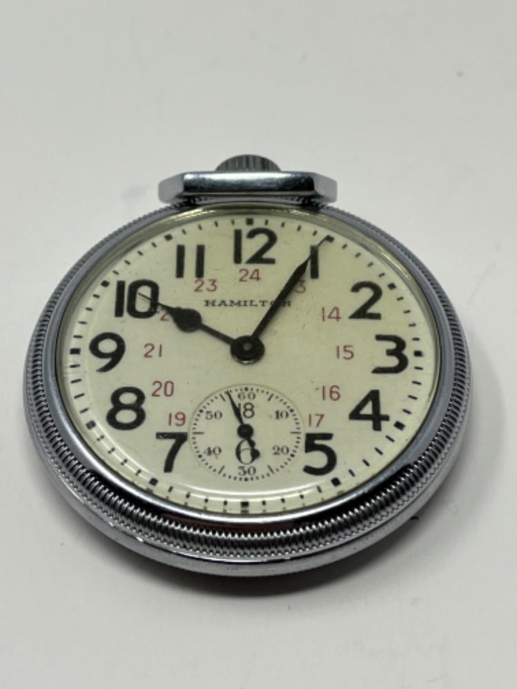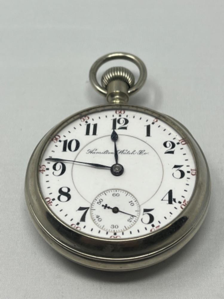 Lot # 10 - Hamilton Watch Co. Pocket Watch 21 Jewel (Works!) Starting Bid: $ 5.00 Bids: This sale will end in: |