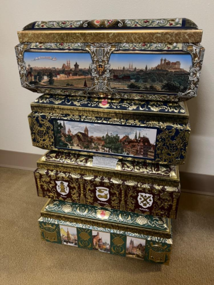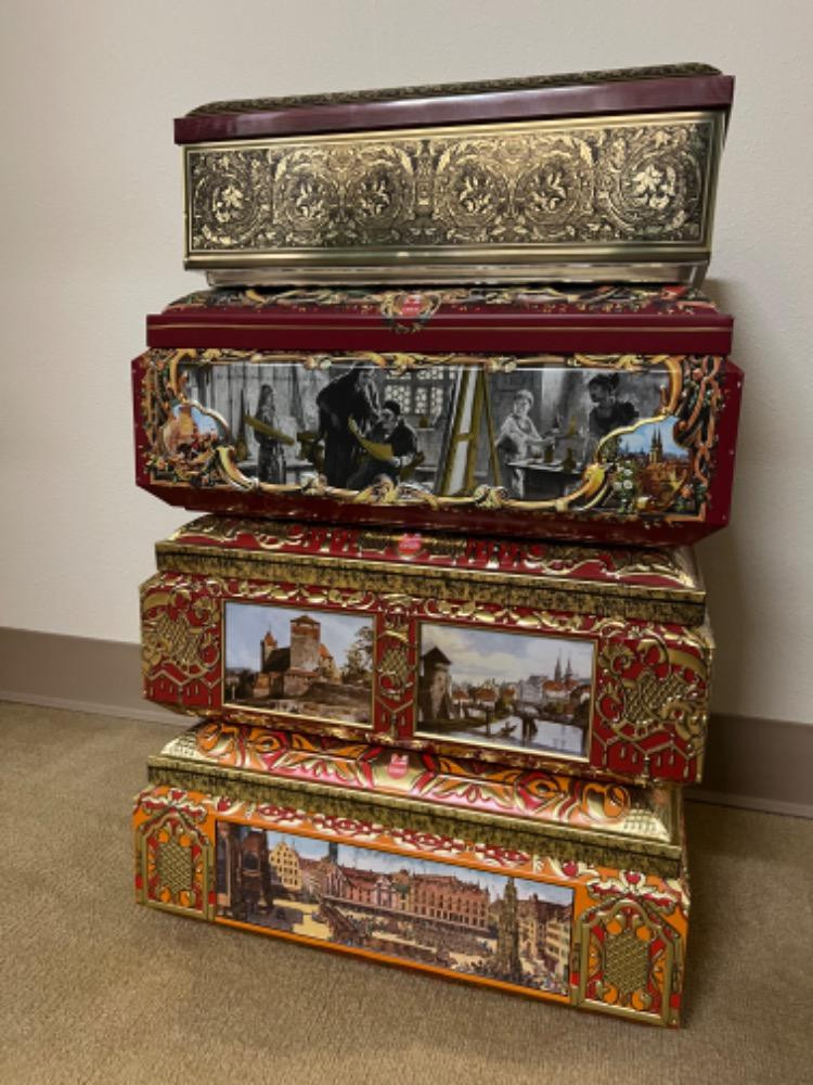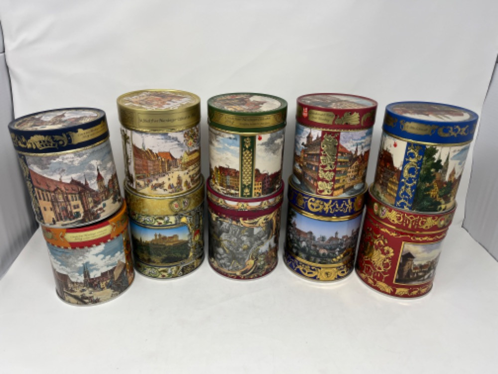 Lot # 130 - 10 Vintage Otto Schmidt Cylinder German Cookie Tins Starting Bid: $ 5.00 Bids: This sale will end in: |
