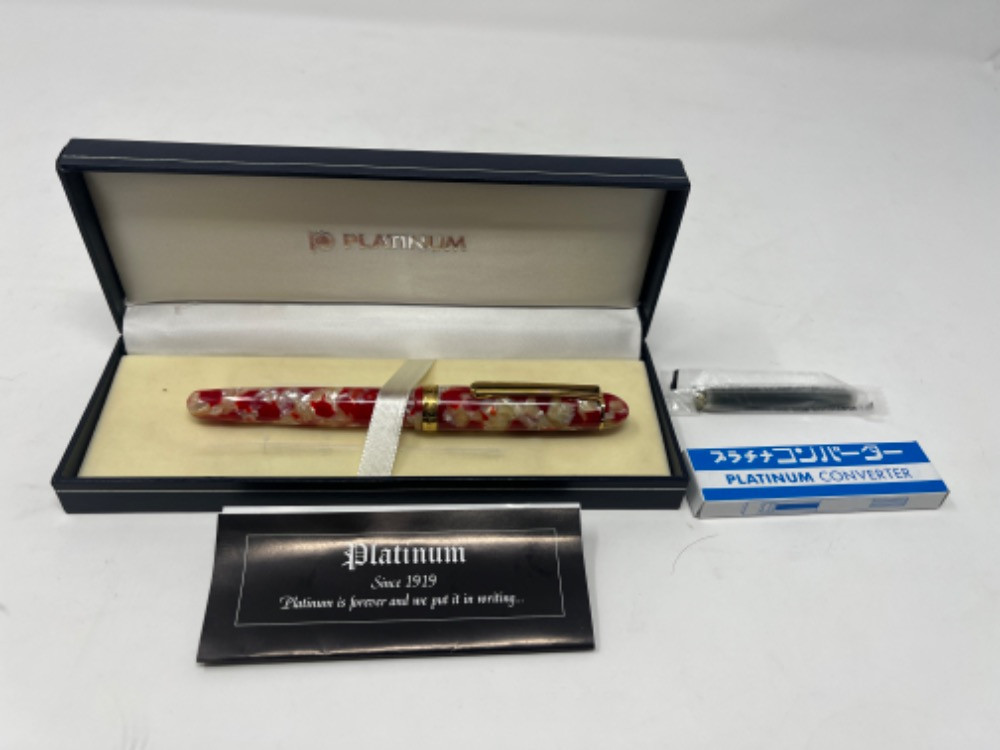 Lot # 111 - Platinum Century Koi Celluloid 14Kt Gold Nib Starting Bid: $ 5.00 Bids: This sale will end in: |