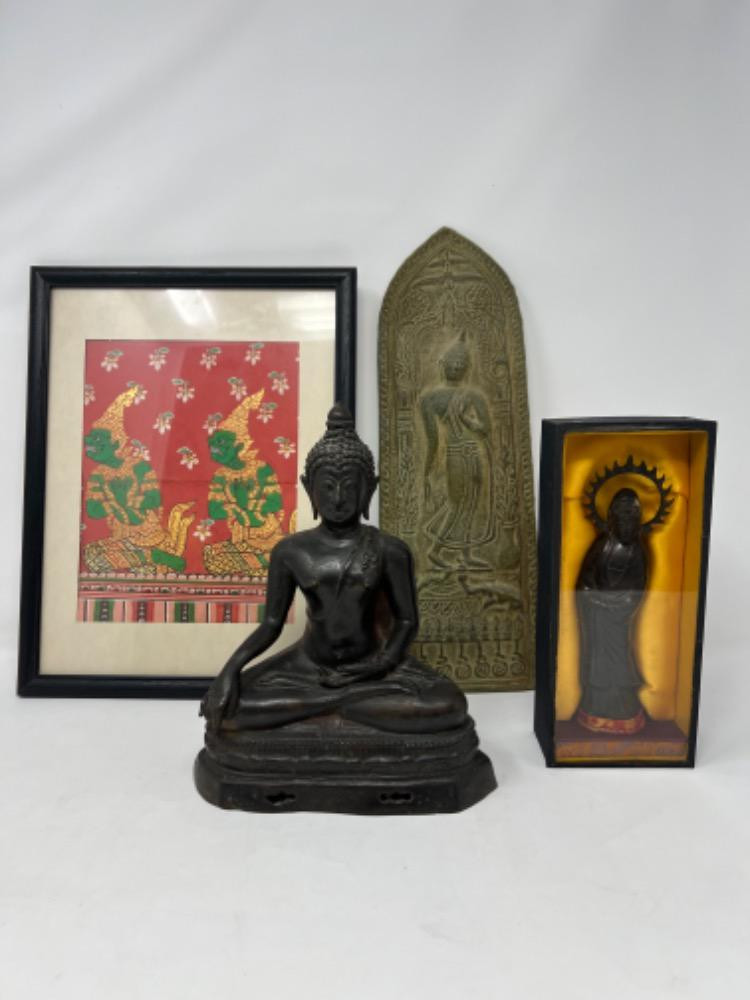 Antique/Vintage Asian Art: Antique Bronze Buddhas, Silk Tapestries, Framed Art, Buddhist Vajras, Early 20th Century Japanese Sake Ceramic Jugs and Silk Prints To Name A Few!