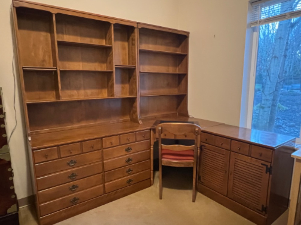 Lot # 120 - Vintage Ethan Allen Heirloom Nutmeg Desk Unit Starting Bid: $ 5.00 Bids: This sale will end in: |