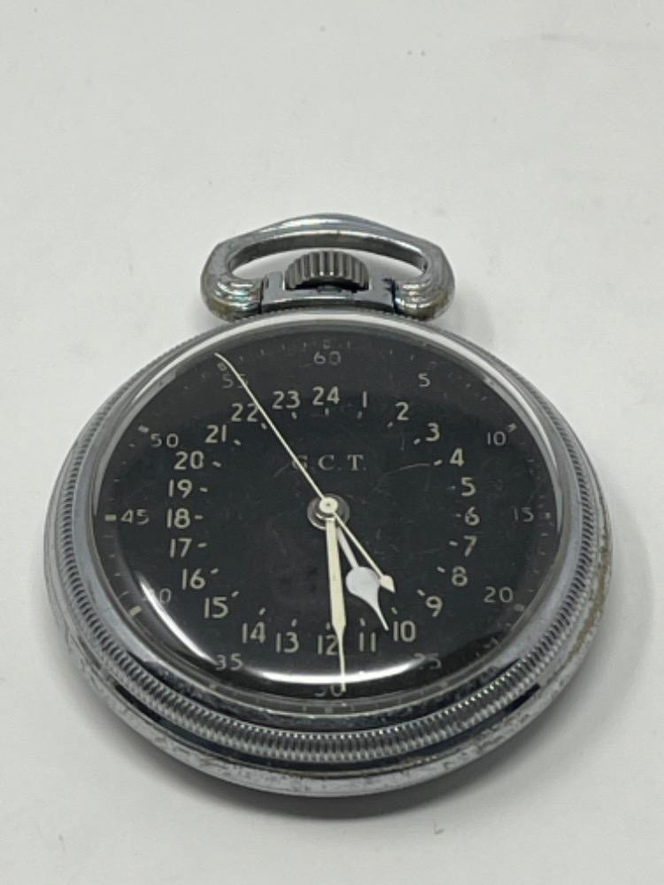 Lot # 22 - Hamilton Watch Co. WW2 Black Face G.C.T. Watch 22 Jewel Starting Bid: $ 5.00 Bids: This sale will end in: |