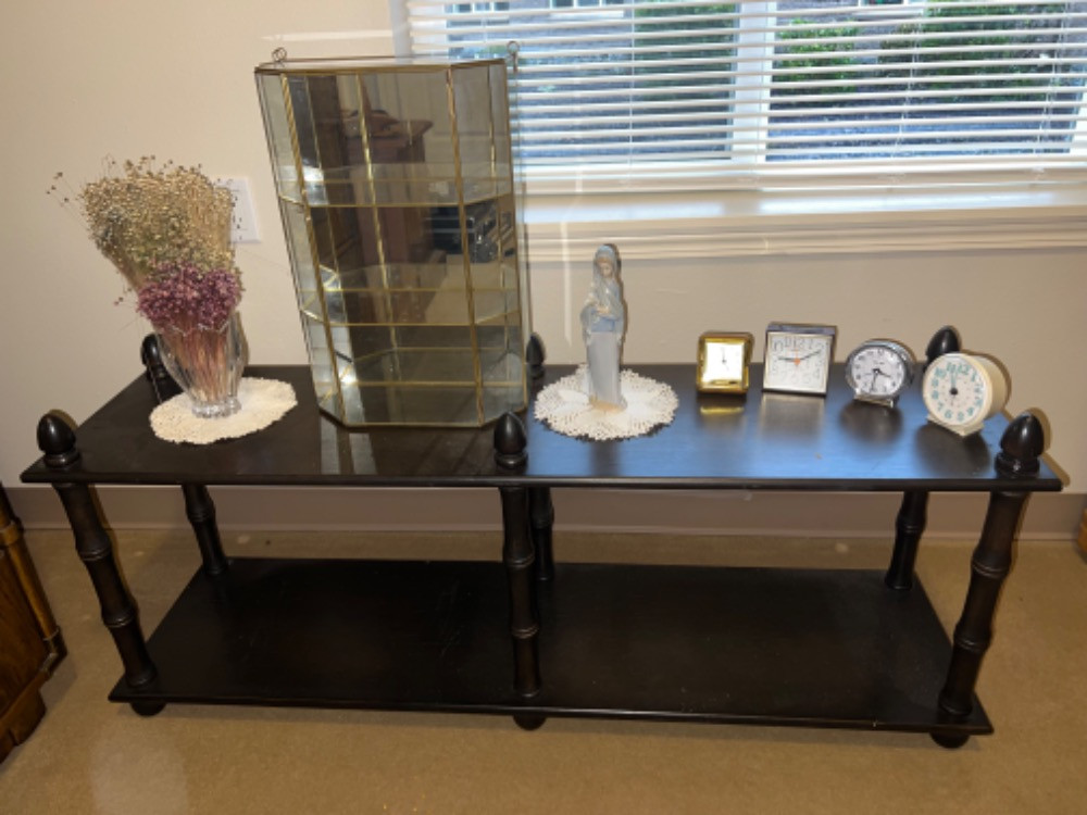 Lot # 147 - Unique Dark Wood Low Console Table Plus More! Starting Bid: $ 5.00 Bids: This sale will end in: |