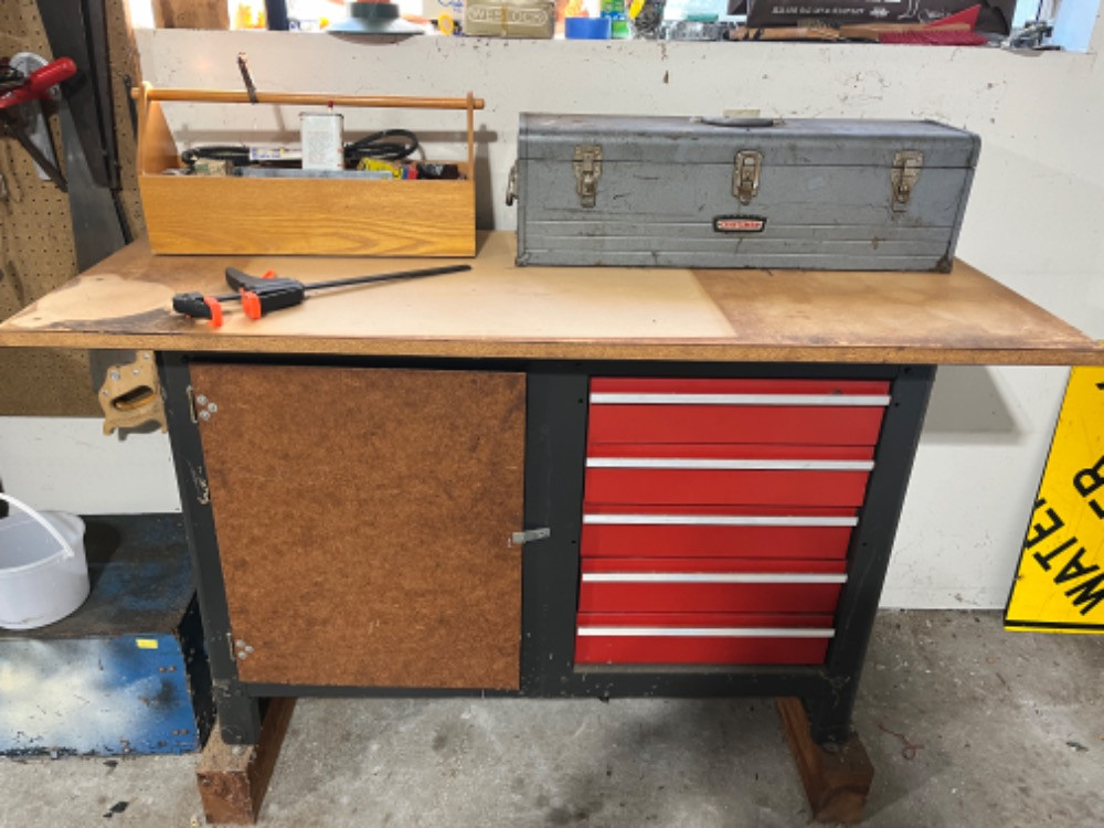 Lot # 2 - Work Bench, Craftsman Tool Box, & More! Starting Bid: $ 5.00 Bids: This sale will end in: |
