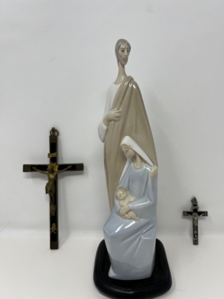 Lot # 22 - Lladro “Holy Family” Statue & 2 Ornate Crucifixes Starting Bid: $ 5.00 Bids: This sale will end in: |