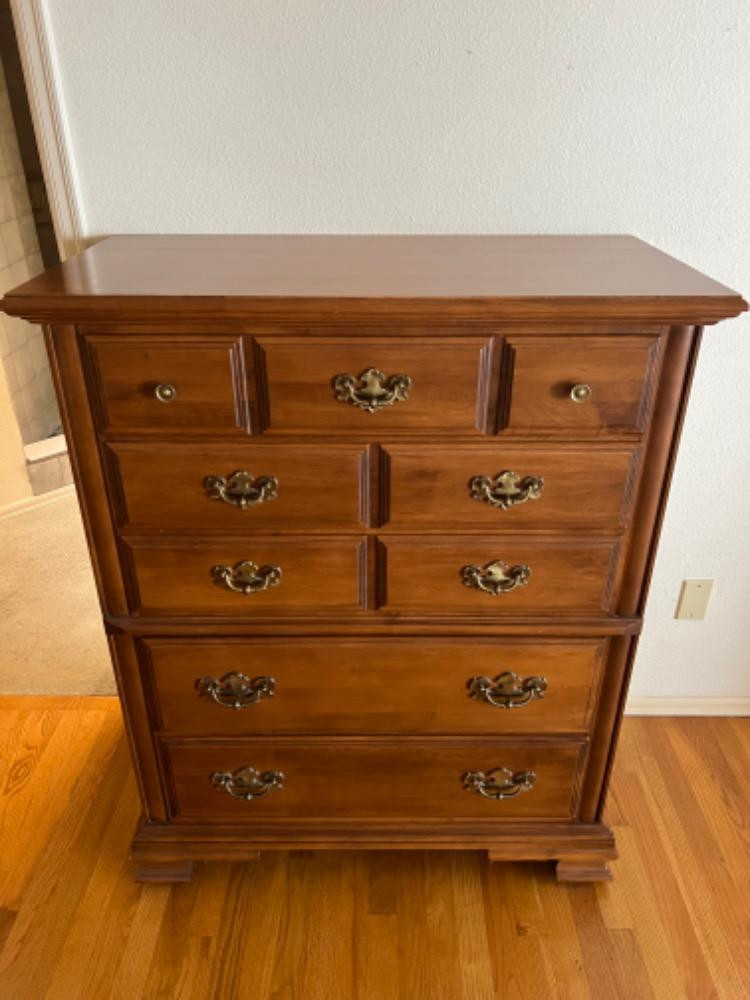Lot # 8 - Vintage Tell City 5 Drawer Tallboy # 2 Starting Bid: $ 5.00 Bids: This sale will end in: |