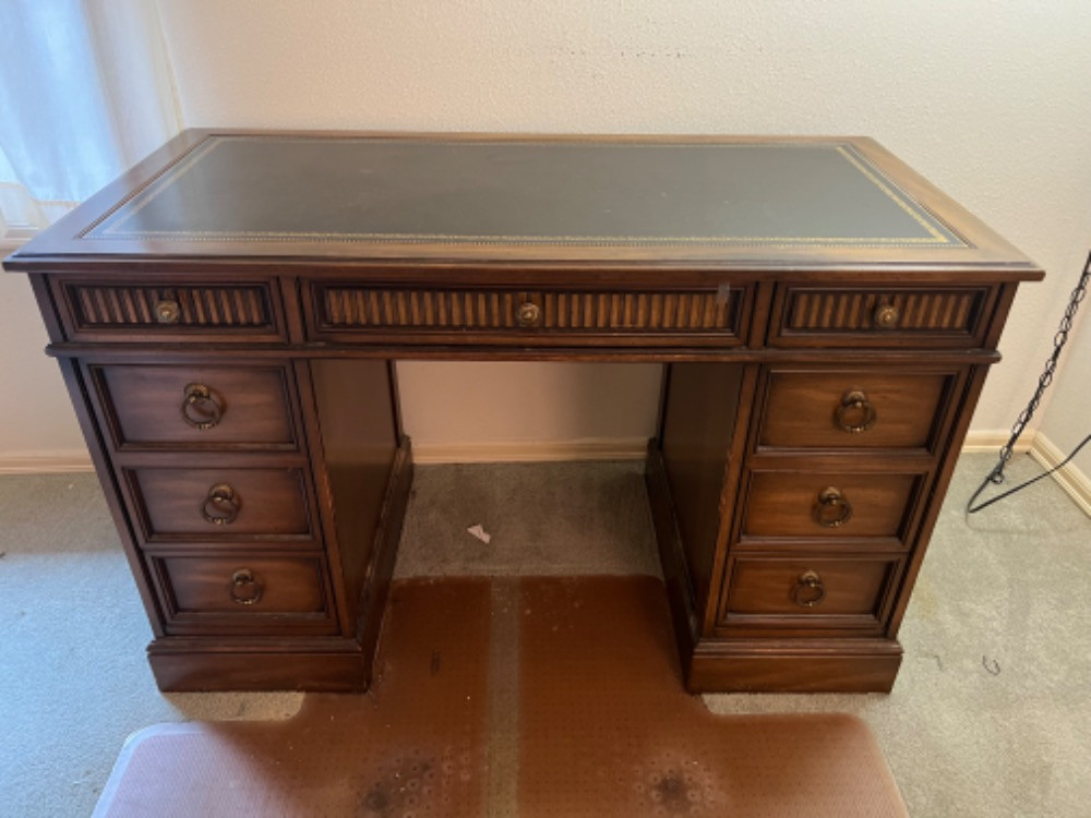 Lot # 33 - Vintage Sligh + Lowry Leather Top Desk Starting Bid: $ 5.00 Bids: This sale will end in: |