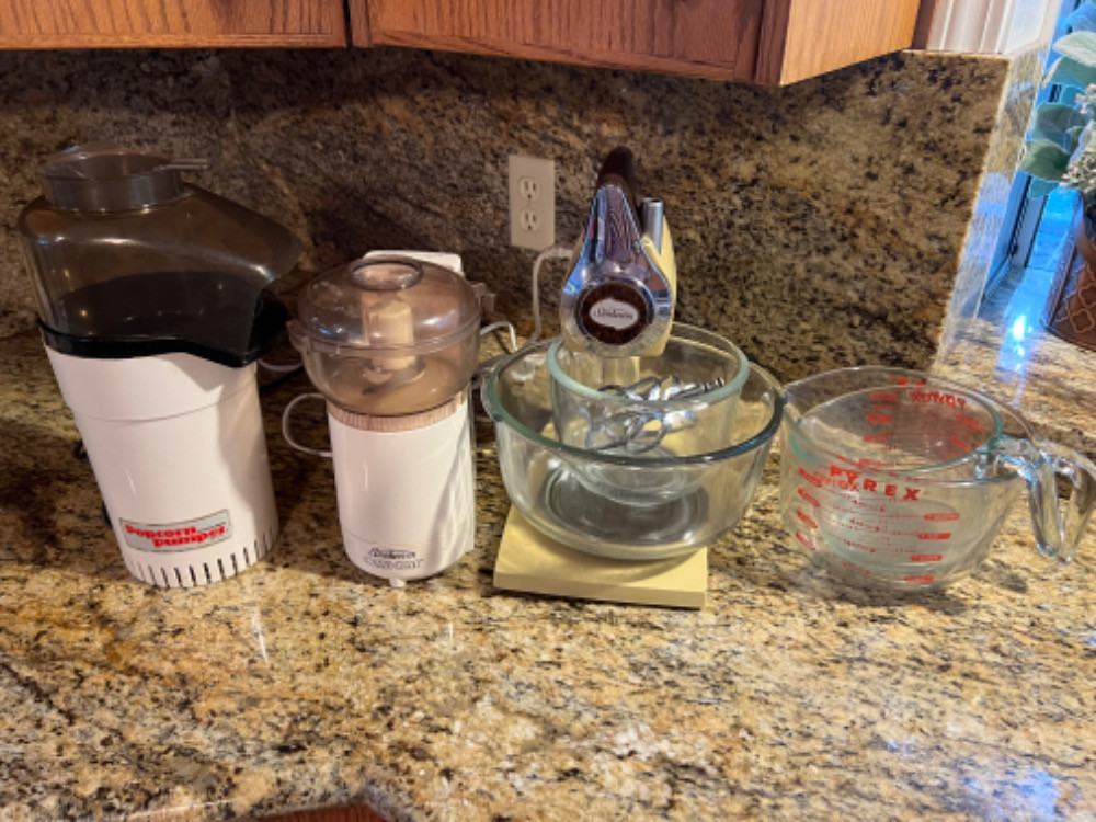 Lot # 67 - Vintage Mixmaster, Food Processor & Popcorn Maker Starting Bid: $ 5.00 Bids: This sale will end in: |