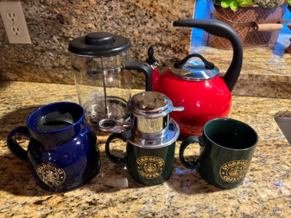 Lot # 69 - Chantal Tea Kettle & Starbucks Mugs Starting Bid: $ 5.00 Bids: This sale will end in: |