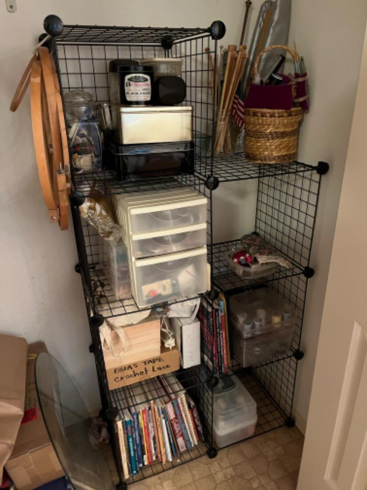 Lot # 105 - Sewing Lot w/ Wire Storage Rack Starting Bid: $ 5.00 Bids: This sale will end in: |