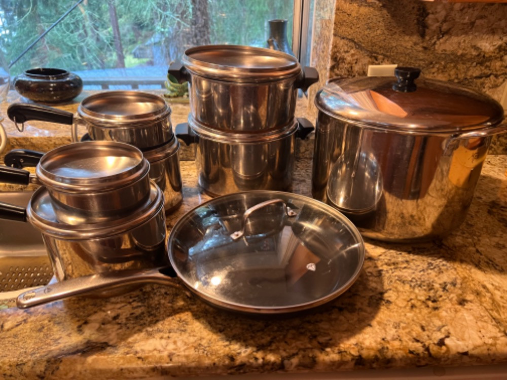 Lot # 110 - Revere Ware Copper Bottom Pot Set Starting Bid: $ 5.00 Bids: This sale will end in: |