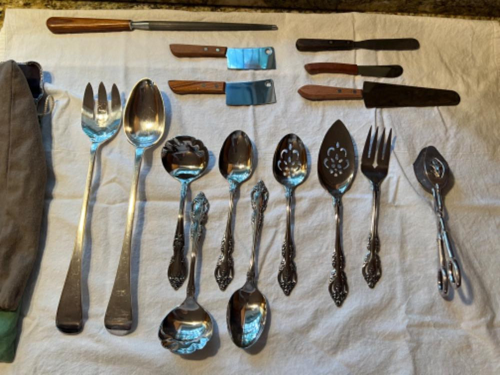 Lot # 116 - Silver Servingware & Misc. Utensils Starting Bid: $ 5.00 Bids: This sale will end in: |