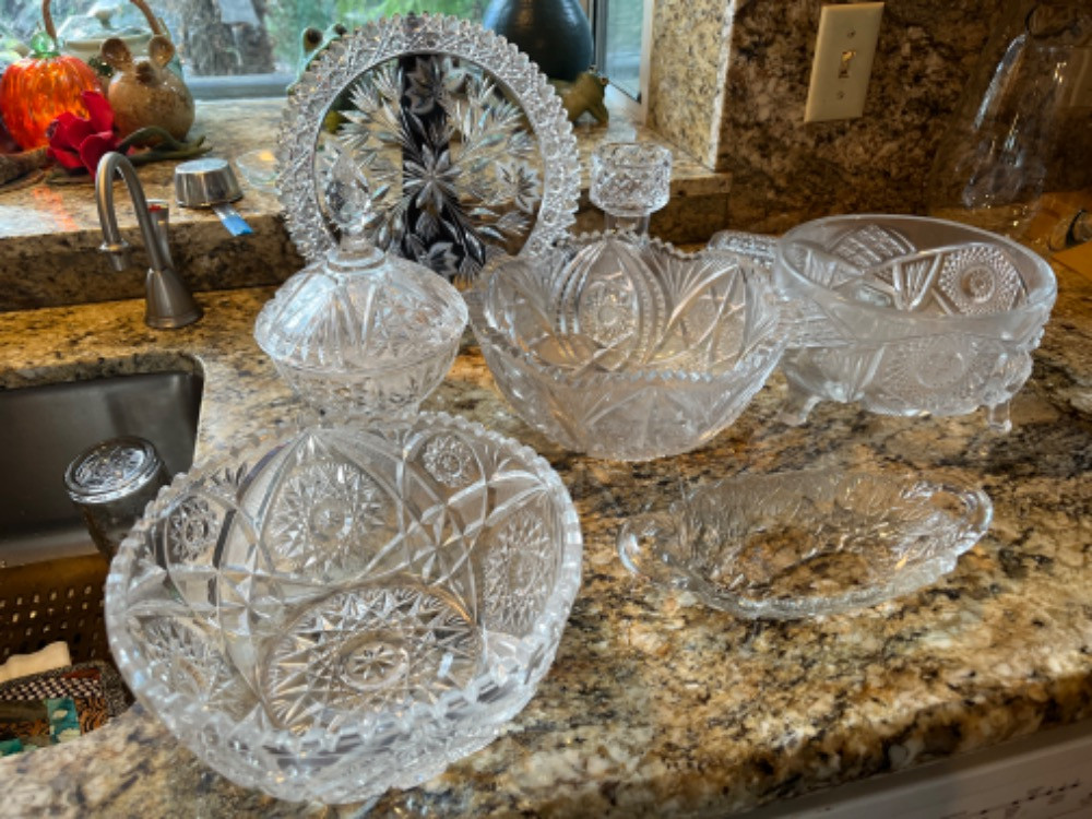 Lot # 126 - 8 Piece Cut Glass Lot Starting Bid: $ 5.00 Bids: This sale will end in: |