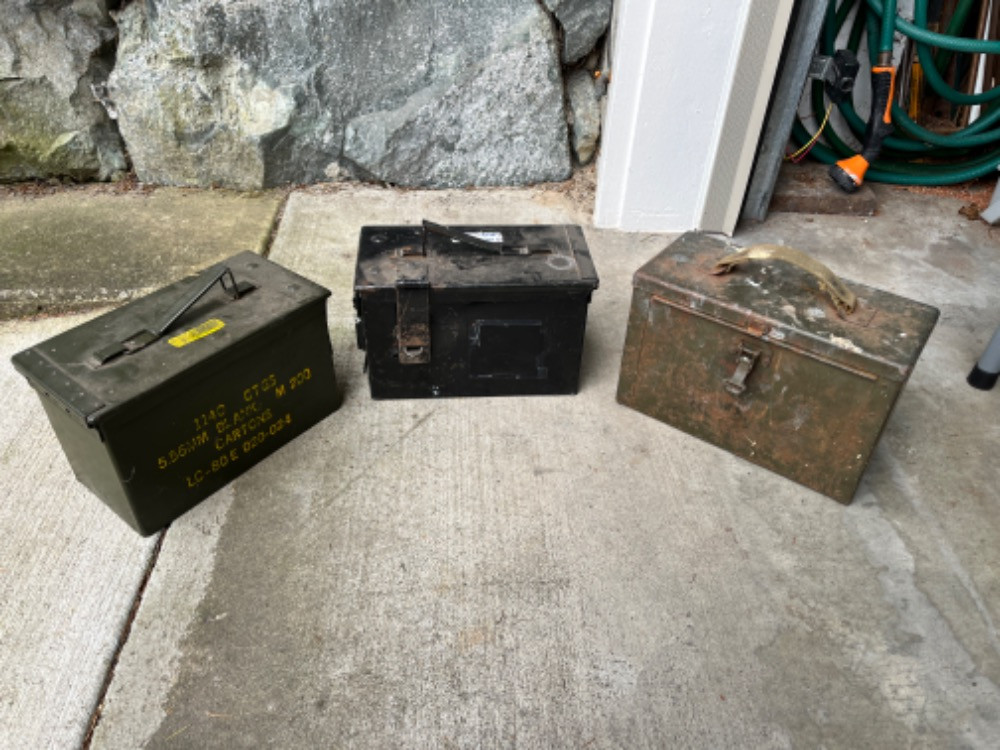 Lot # 3 - 4 Vintage Military Ammo Boxes Starting Bid: $ 5.00 Bids: This sale will end in: |