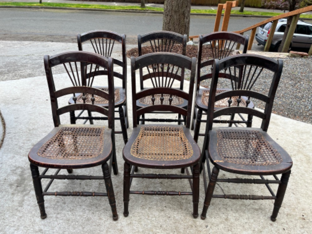 Lot # 7 - 6 Antique Cane Seat Chairs Starting Bid: $ 5.00 Bids: This sale will end in: |
