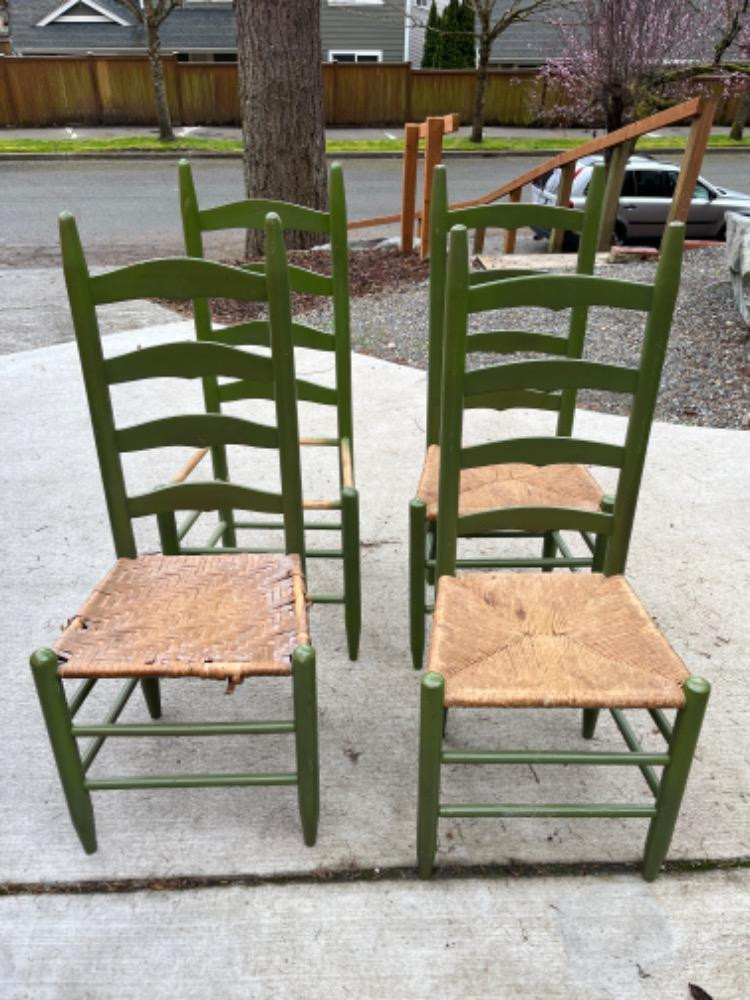 Lot # 8 - Green Ladder Back Chairs Starting Bid: $ 5.00 Bids: This sale will end in: |