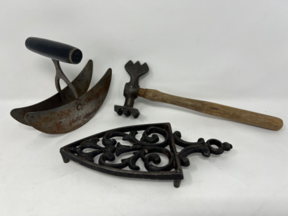 Lot # 18 - Antique Cast Iron Trivet & Meat Tenderizer Starting Bid: $ 5.00 Bids: This sale will end in: |