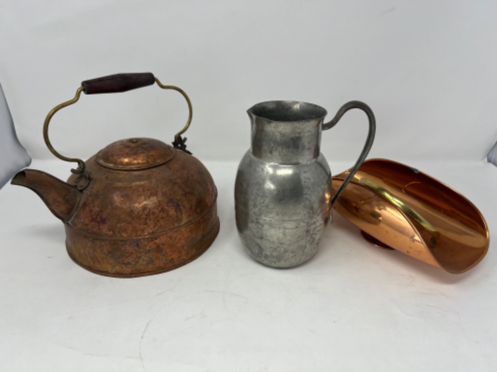 Lot # 27 - Antique Copper Kettle and Genuine Pewter Pitcher Starting Bid: $ 5.00 Bids: This sale will end in: |