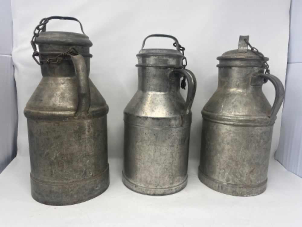 Lot # 39 - 3 Antique Milk Cans w/ Lids Starting Bid: $ 5.00 Bids: This sale will end in: |