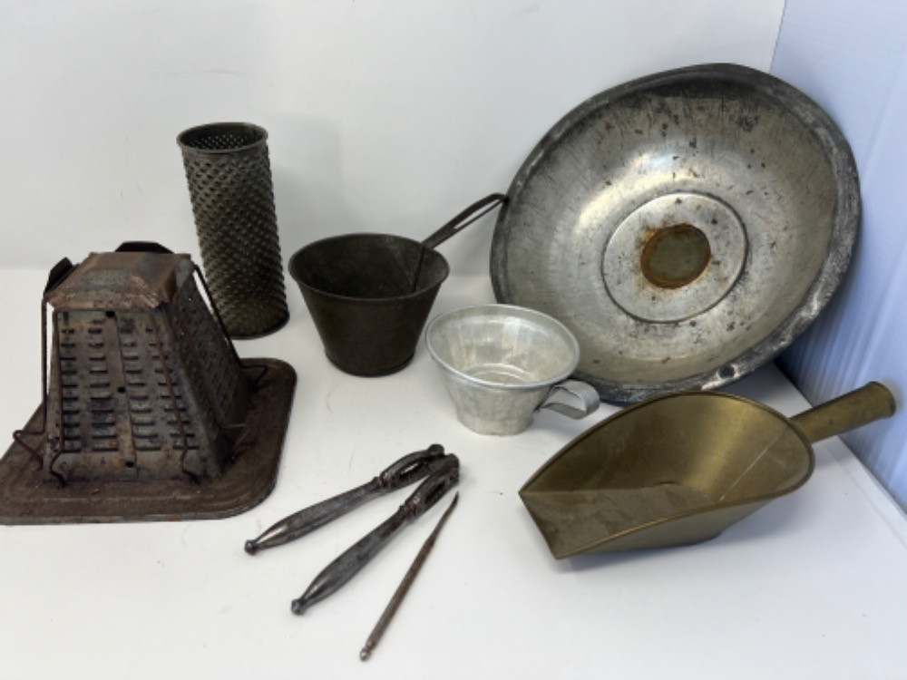 Lot # 78 - Antique Brass General Store Grain Scoop & Other Tools Starting Bid: $ 5.00 Bids: This sale will end in: |