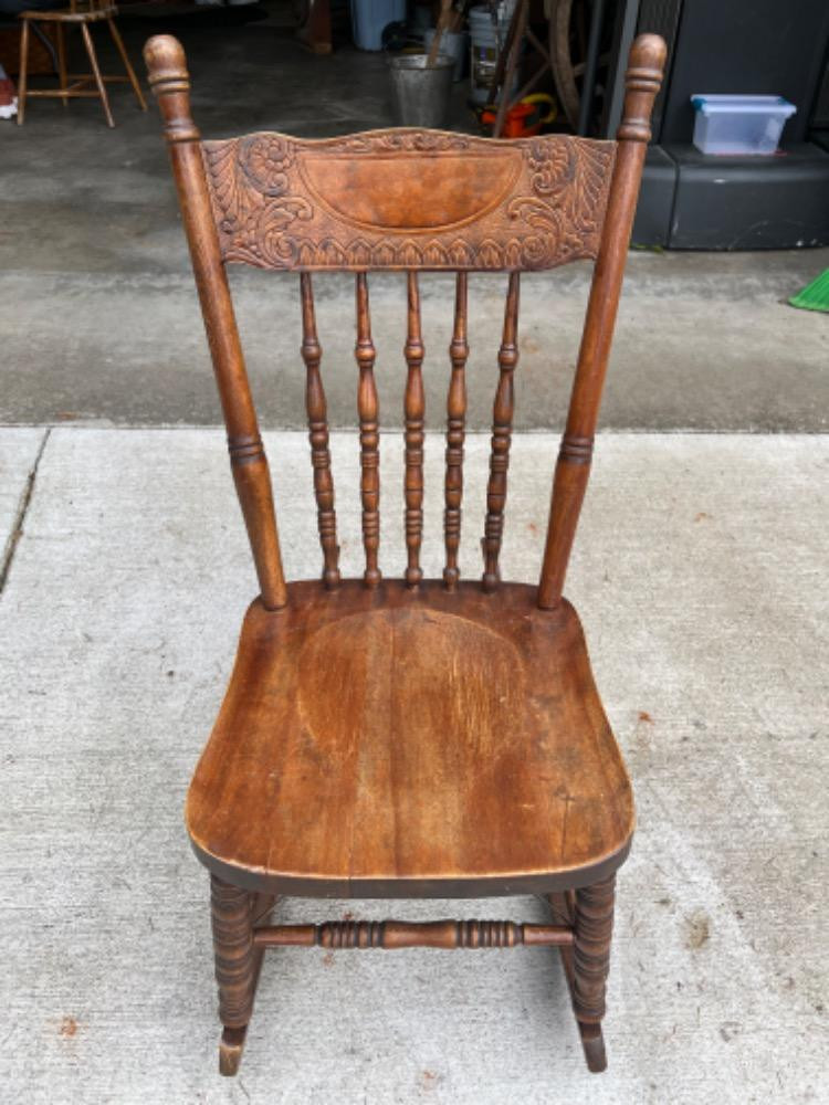 Lot # 107 - Antique Wood Rocking Chair Starting Bid: $ 5.00 Bids: This sale will end in: |