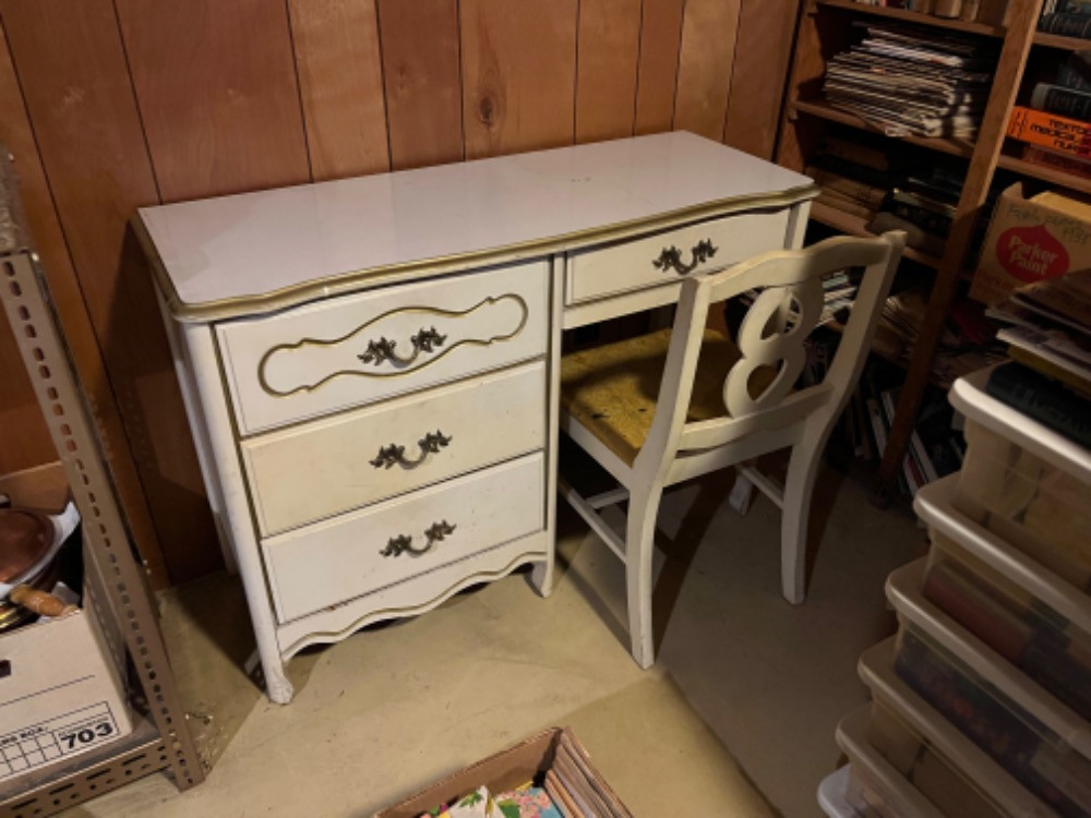 Lot # 108 - French Provincial Style Vanity Desk & Chair Starting Bid: $ 5.00 Bids: This sale will end in: |