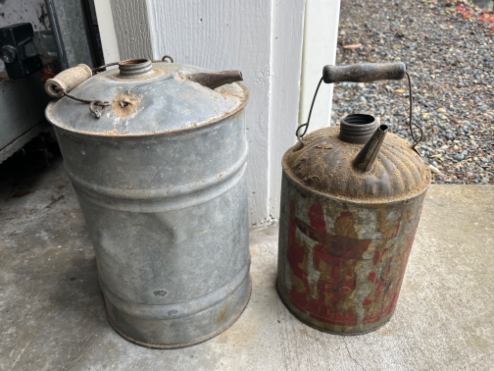 Lot # 141 - 2 Vintage Kerosene Cans Starting Bid: $ 5.00 Bids: This sale will end in: |