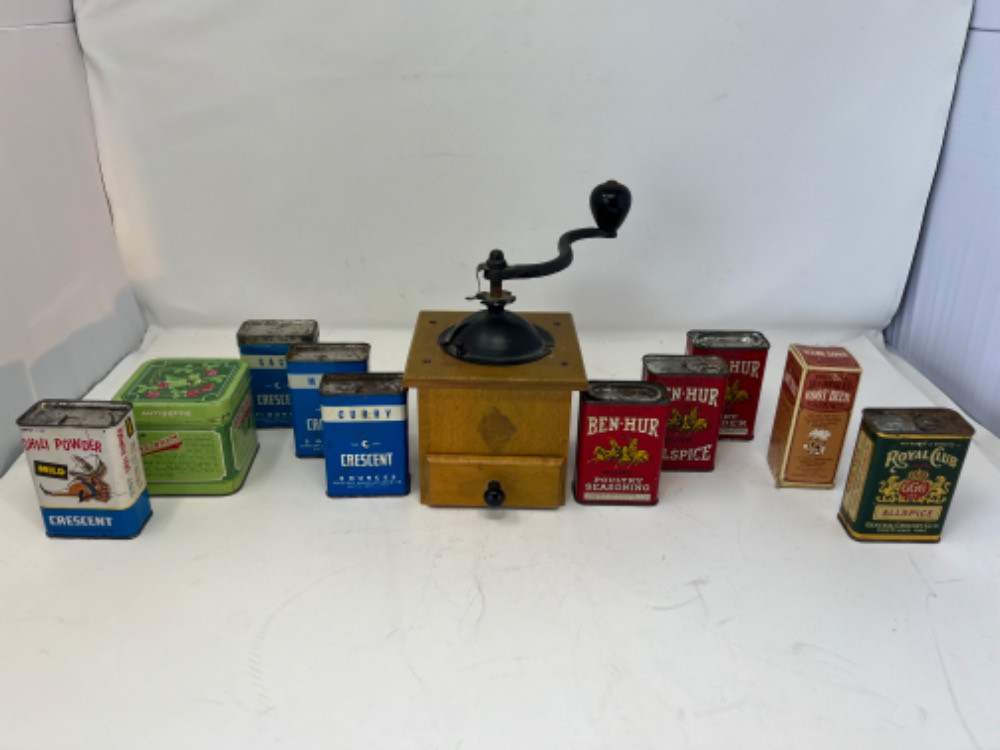 Lot # 111 - Vintage Spice Containers & Coffee Grinder Starting Bid: $ 5.00 Bids: This sale will end in: |
