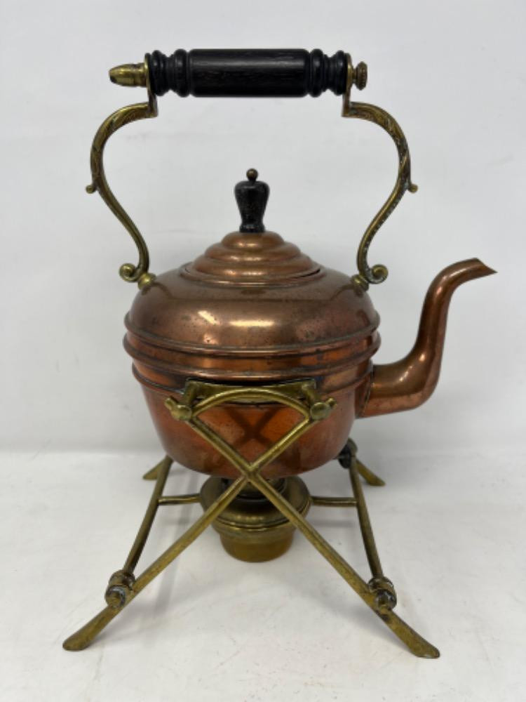 Lot # 11 - Antique Copper Kettle w/ Brass Stand Starting Bid: $ 5.00 Bids: This sale will end in: |