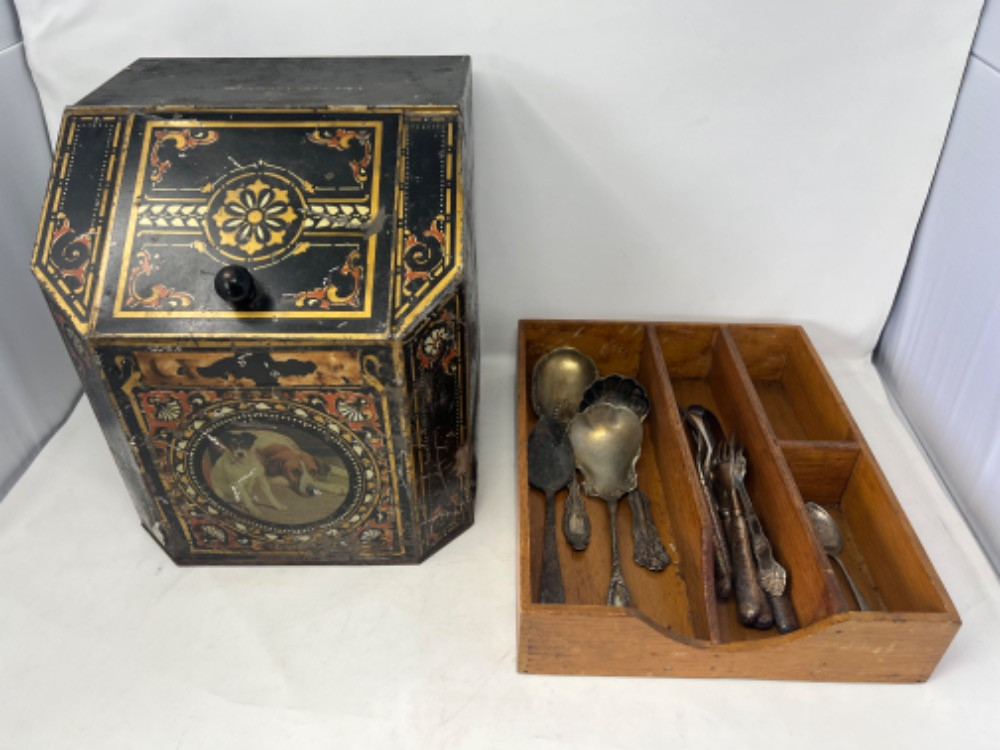 Lot # 40 - Antique Commercial Tea Storage Tin (Dogs) Starting Bid: $ 5.00 Bids: This sale will end in: |