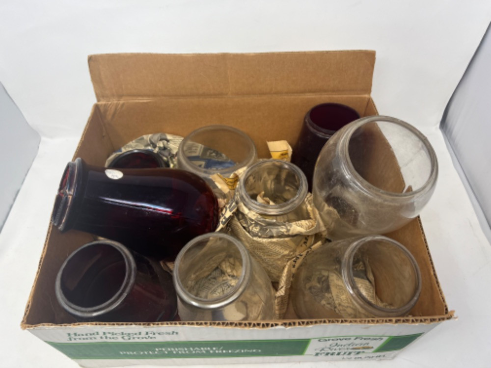 Lot # 28 - Red & Clear Glass Globes for Lanterns Starting Bid: $ 5.00 Bids: This sale will end in: |