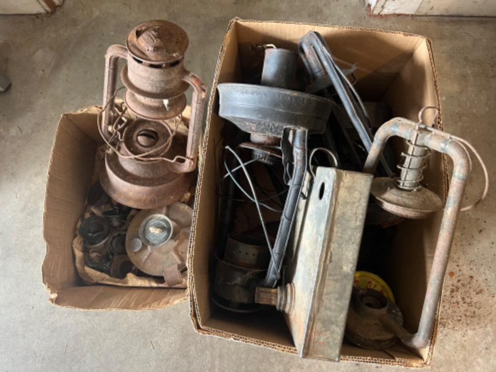 Antiques/Vintage Items: Antique Spool Cabinet, Secretary Desk, Tons of Antique Lanterns, Antique Tools, Primitive Tools, Ford Branded Wrenches, Early Stanley Tools, Glass Bottles, Art, 19th/20th Century Books, Vintage Advertising, David Bradley Tractor and More!
