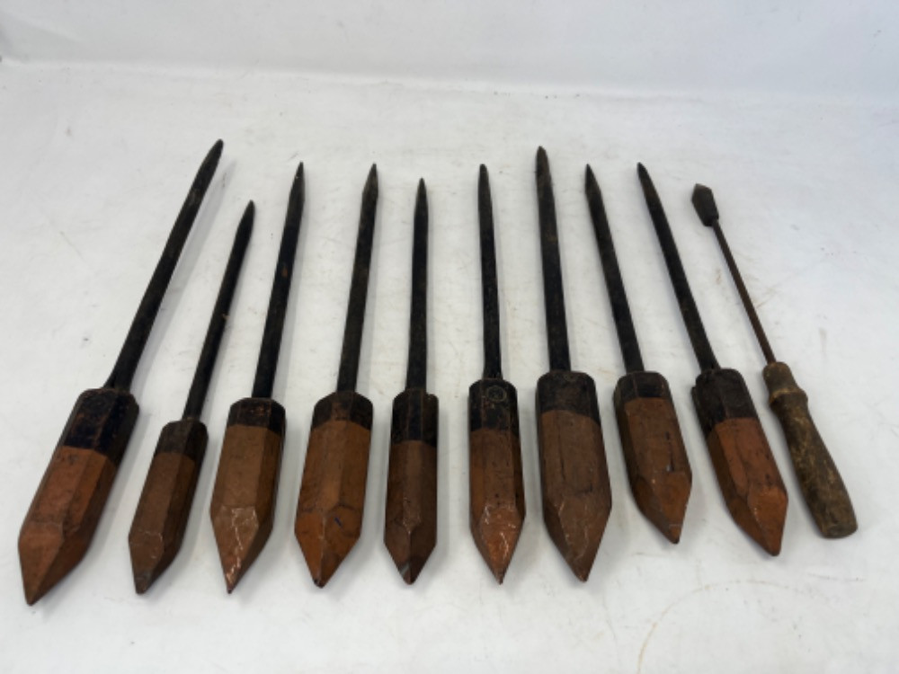 Lot # 16 - Antique Wood/Copper Soldering Irons (10 Total) Starting Bid: $ 5.00 Bids: This sale will end in: |