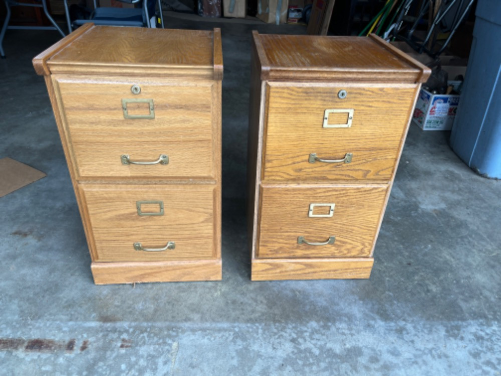Lot # 123 - Set of 2 Wooden Filing Cabinets Starting Bid: $ 5.00 Bids: This sale will end in: |