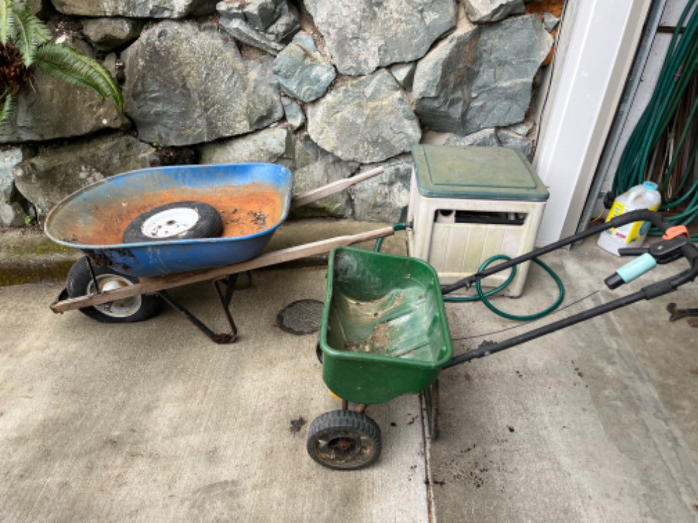 Lot # 127 - Wheelbarrow, Spreader & Hosebox Starting Bid: $ 5.00 Bids: This sale will end in: |