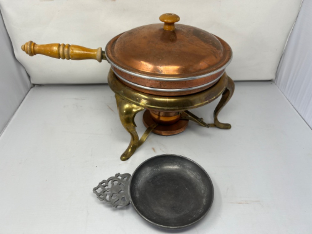 Lot # 146 - Copper Brass Chafing Dish & Stede Pewter Porridge Dish Starting Bid: $ 5.00 Bids: This sale will end in: |