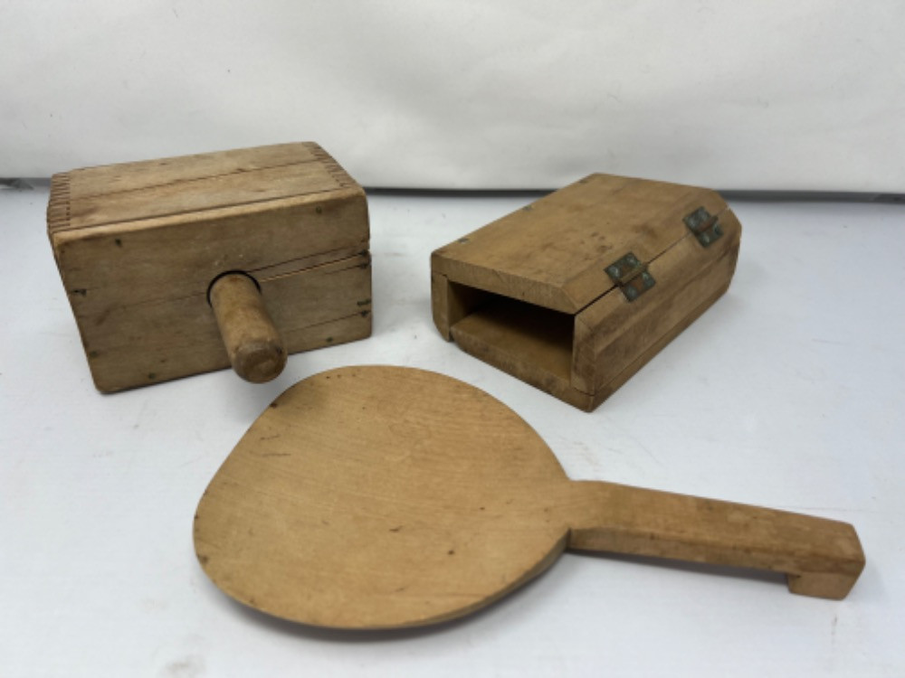 Lot # 145 - Antique Wood Butter Molds and Paddle Starting Bid: $ 5.00 Bids: This sale will end in: |