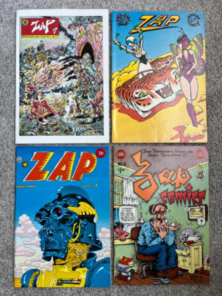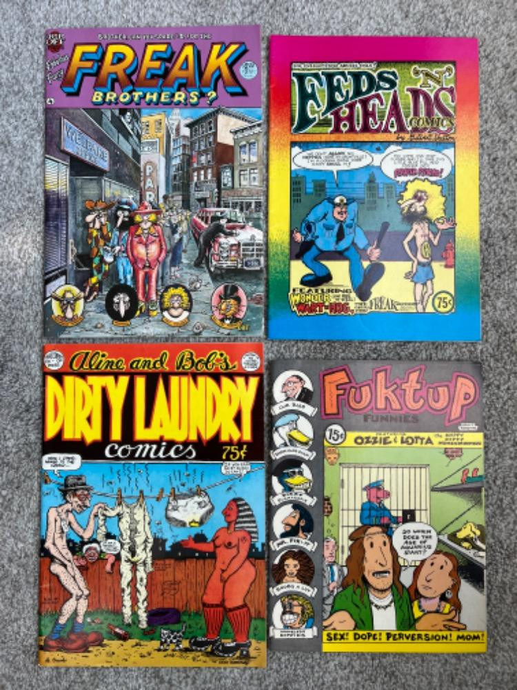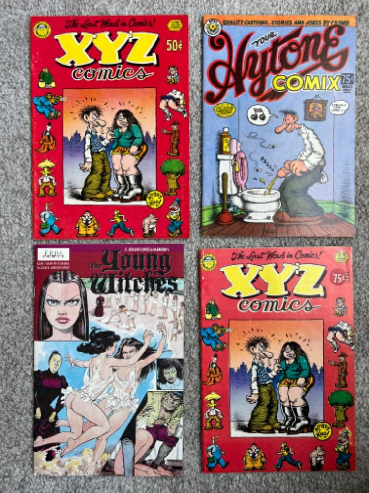 Comics: Lots 170-176 features vintage naughty comics. If you wish not to view please do not go past lot #169. It has some graphic images that can be seen, but this awesome collection contains many first issues and first prints. The comics were taken to a local shop where they were identified by their issue, print, and condition. These are all listed in the description of the lots. Comics available are Weirdo, Zap, first and second issue of Trump magazine and much more!