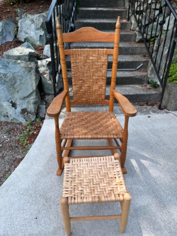 Lot # 46 - Larger Caned Wooden Rocker w/ Rest Starting Bid: $ 5.00 Bids: This sale will end in: |
