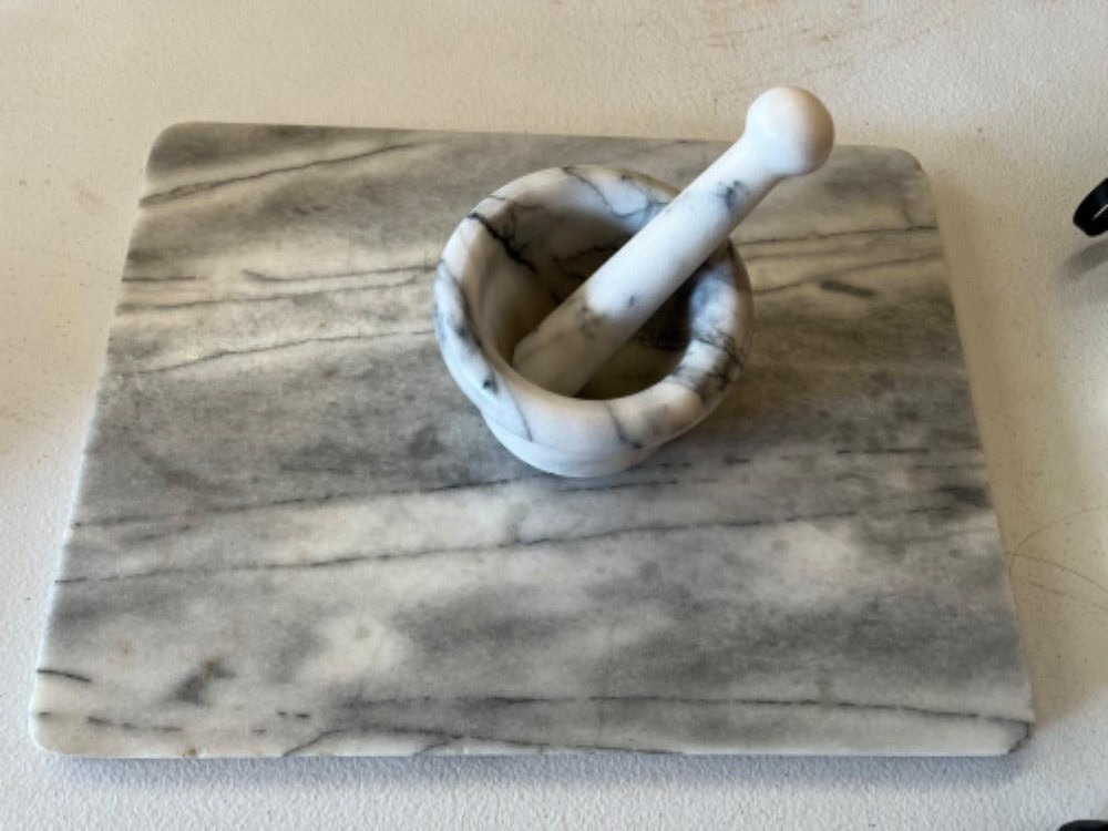 Lot # 183 - Stone Cutting Board & Pestle/Mortar Starting Bid: $ 5.00 Bids: This sale will end in: |