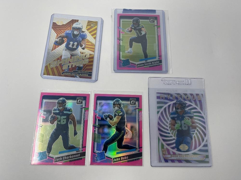 Lot # 12 - 5 Seattle Seahawks Rookie Cards (Bobo, Njigba, Charbonnet) Starting Bid: $ 5.00 Bids: This sale will end in: |