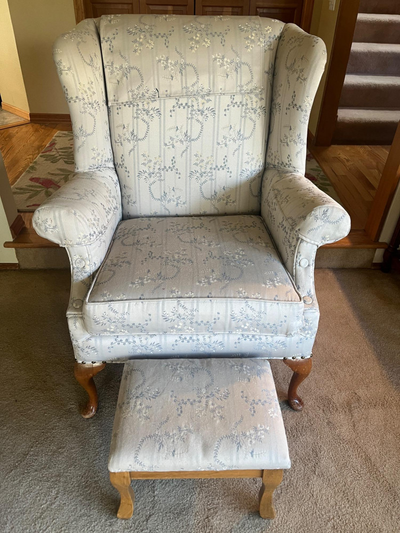 Lot # 9 - Vintage Wingback Chair w/ Footrest Starting Bid: $ 5.00 Bids: This sale will end in: |