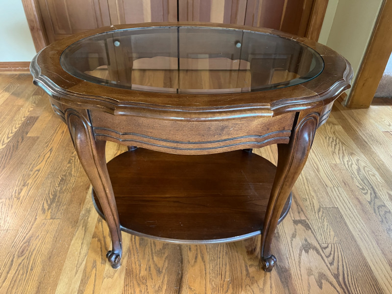 Lot # 27 - Vintage Wood End Table (Glass Top) Starting Bid: $ 5.00 Bids: This sale will end in: |