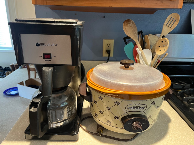 Lot # 162 - Crock Pot, Coffee Maker, Kitchen Utensils Starting Bid: $ 5.00 Bids: This sale will end in: |