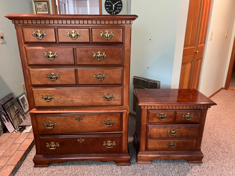 Lot # 13 - Vintage Broyhill Dresser & Night Stand Combo Starting Bid: $ 5.00 Bids: This sale will end in: |