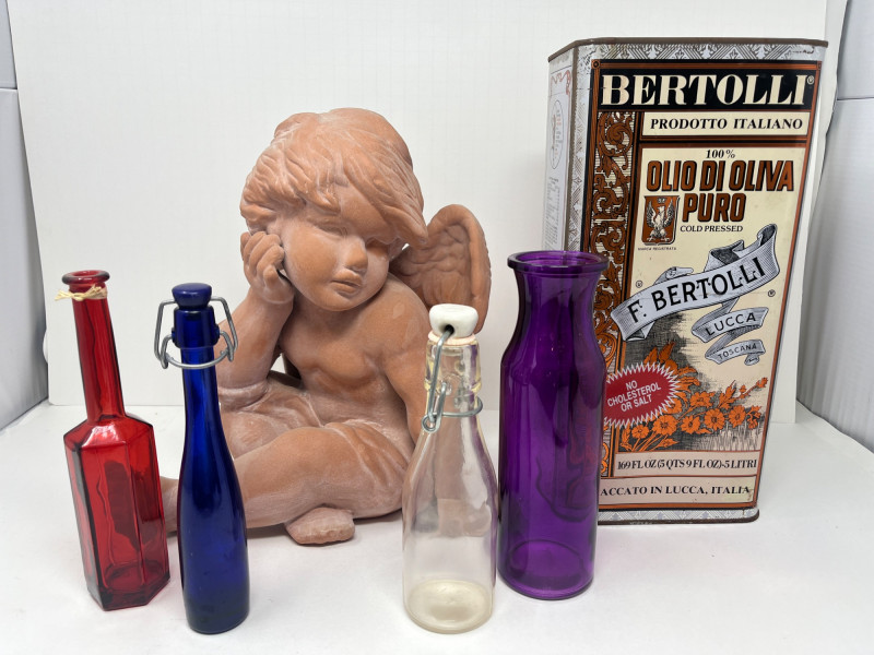 Lot # 206 - Decanter, Van Gogh Print, Wooden Cow, Angel Plaque Lot Starting Bid: $ 5.00 Bids: This sale will end in: |