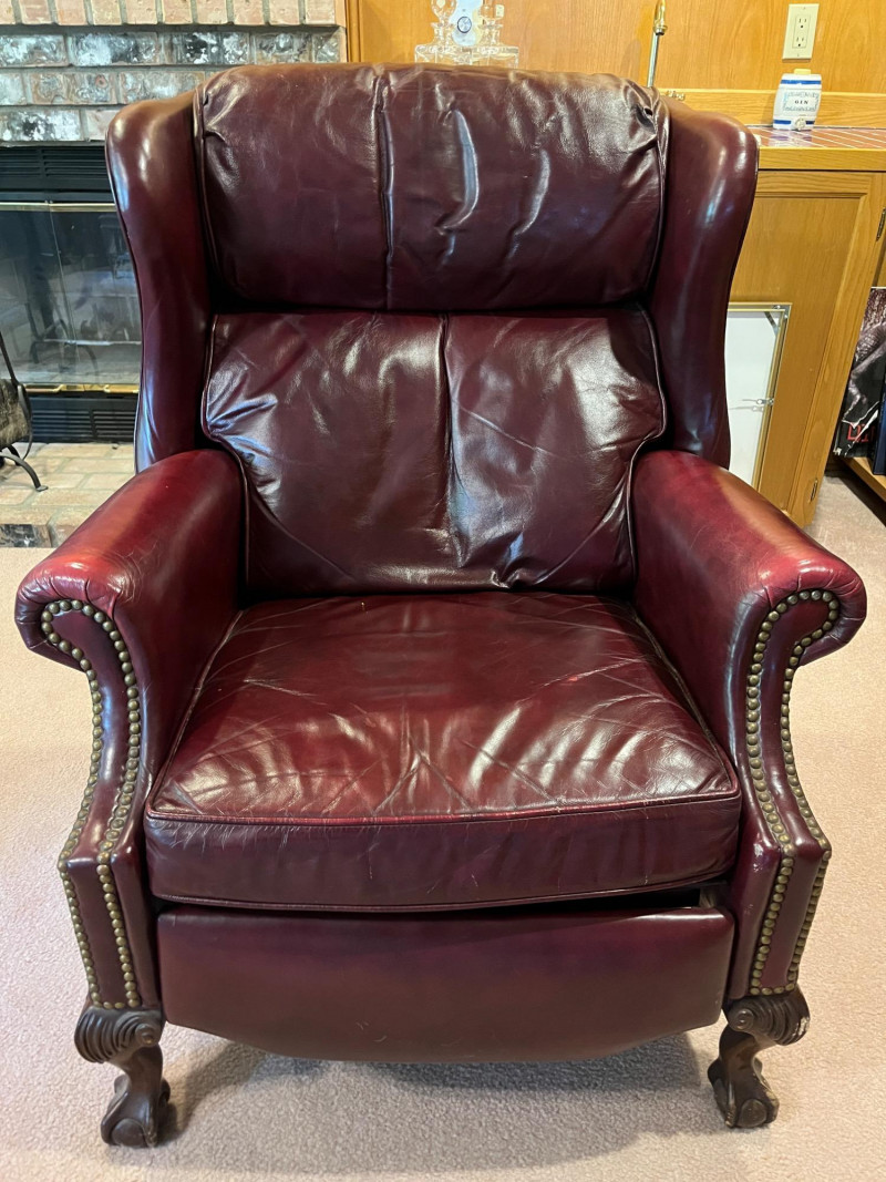 Lot # 31 - Vinatge Hancock & Moore Leather Burgundy Recliner Starting Bid: $ 5.00 Bids: This sale will end in: |