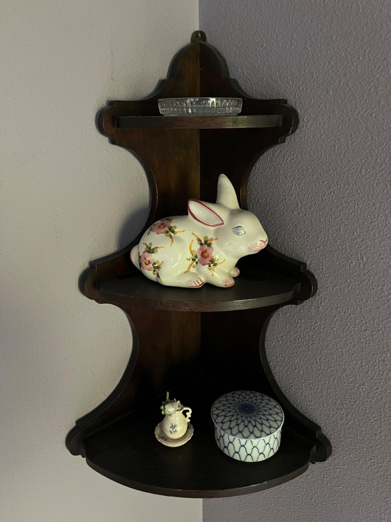 Lot # 159 - Corner Curio Shelf w/ Decor Starting Bid: $ 5.00 Bids: This sale will end in: |