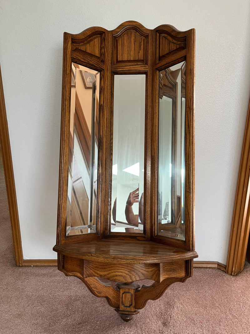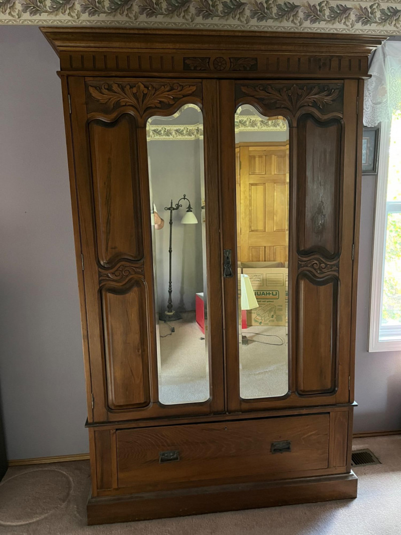 Lot # 7 - Antique Wooden Armoire w/ Mirrored Doors Starting Bid: $ 5.00 Bids: This sale will end in: |